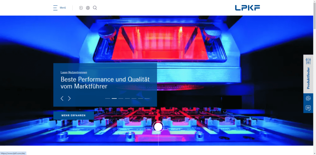 Productos y Negocios: LPKF ofrece sistemas de fabricación basados en láser, incluyendo equipos de prototipado de PCB, sistemas de soldadura de plástico por láser y soluciones de procesamiento de vidrio delgado, sirviendo a industrias como electrónica, automotriz y energía solar.