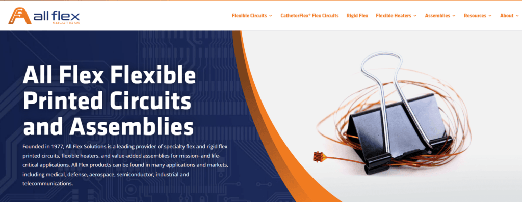 Productos y negocio: All Flex se especializa en la producción de circuitos impresos flexibles y rígido-flexibles de alta calidad diseñados para aplicaciones que requieren ingeniería precisa y fiabilidad. También ofrecen calentadores flexibles que sirven a una amplia gama de industrias, desde dispositivos médicos hasta sistemas aeroespaciales. Al proporcionar servicios completos de diseño, ensamblaje y pruebas, All Flex ofrece soluciones integrales que cumplen con rigurosos requisitos normativos y técnicos, consolidando su presencia en mercados de alto riesgo. Su modelo de negocio enfatiza la innovación y la flexibilidad, permitiéndoles manejar de manera eficiente proyectos complejos y personalizados.
