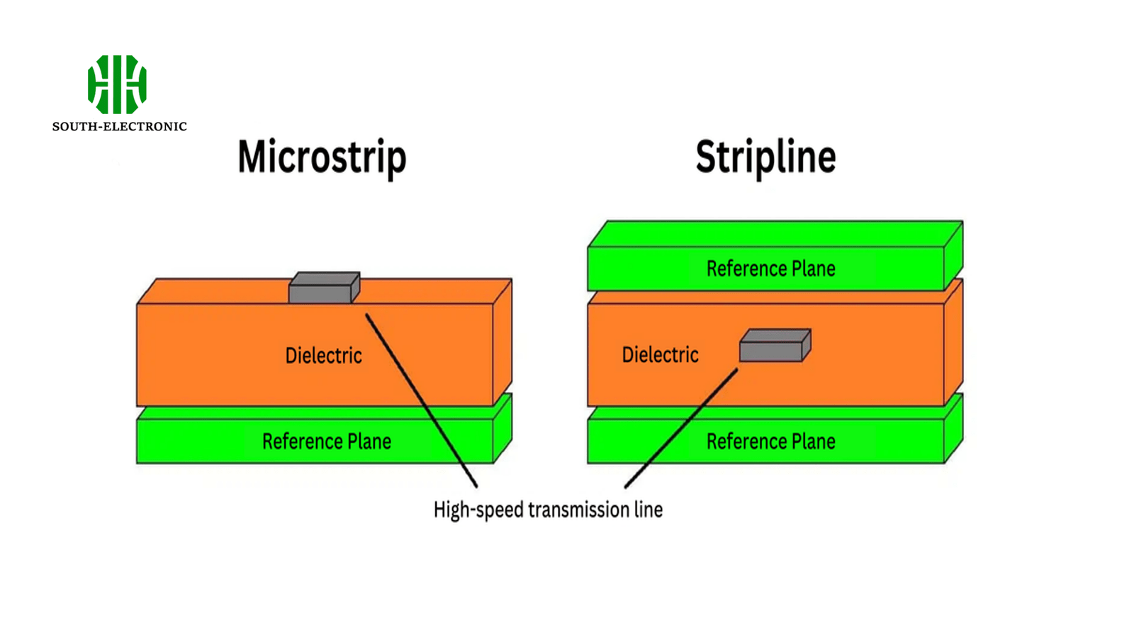 Stripline sandwiches conductors between dielectric layers for EMI immunity, while microstrip exposes traces on outer layers for lower cost but higher radiation. Stripline offers 3-4× better shielding for frequencies above 2GHz.