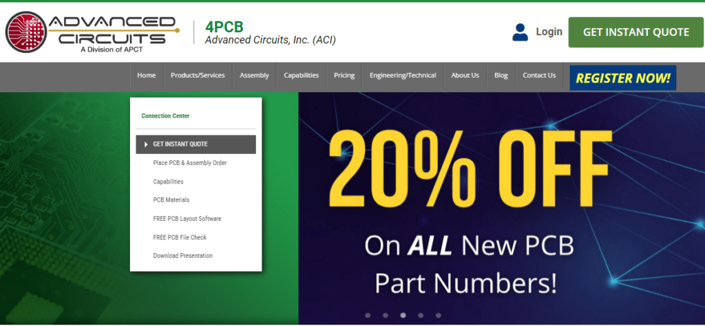 . - Other Products: Advanced Circuits provides a range of services including fabrication, order status tracking, tooling, and technical support